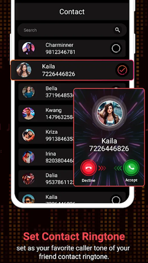 Using this My Name Ringtone Maker : MP3 Ringtone Editor app you can separately set ringtone to each of your contact. You can create new ringtone and immediately assign to contact or set as default ringtone.