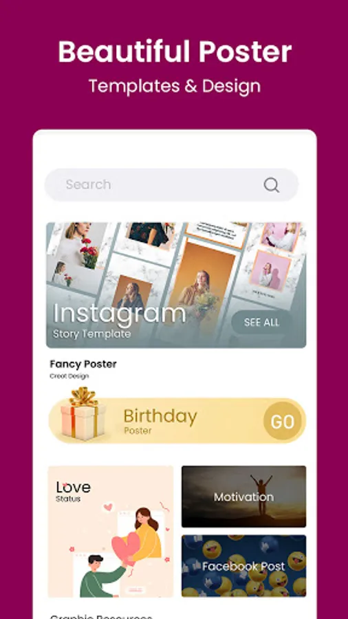 Create high-quality posters for adverts with photos and text—beautiful flyer maker with graphic layout templates in this Fancy poster maker app.