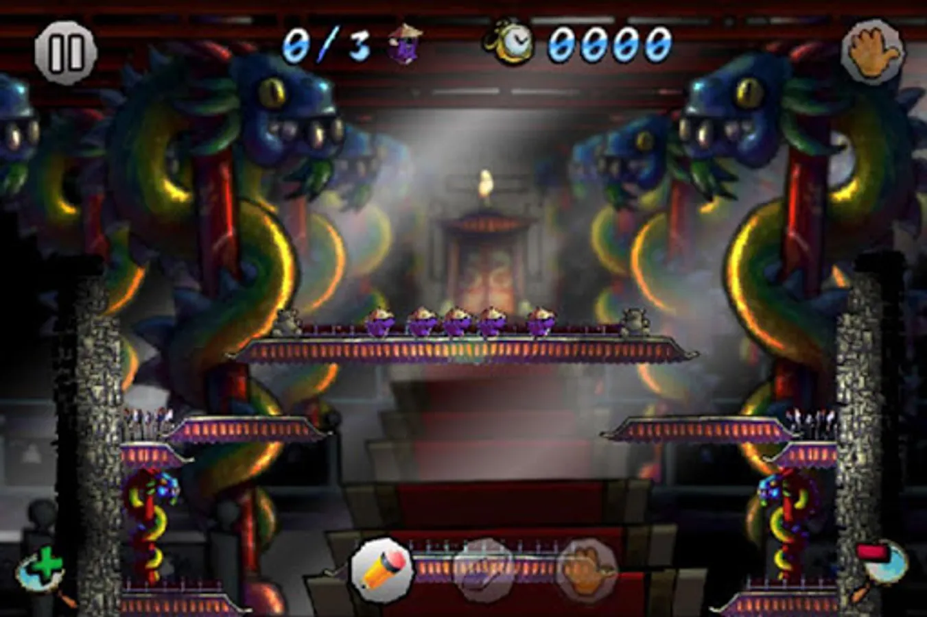 You determine the way home simply by skillfully drawing stairs with your finger. Tap the screen once to start a new stairway - then move the finger to the point where the stairs should end and stop touching the screen. The newly created path only exist for a few seconds - so it depends on the right timing. You can make up to 8 paths at a time. The group members will happily follow any path that you draw for them. And this way, with a little bit of luck, you'll make sure that all of the clan members reach their home safely. In the process, watch out for dangerous traps and take care that your people don't fall down to far.
