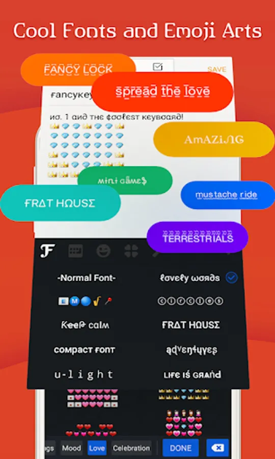 โ Integrated emoji & emoticon keyboard which is compatible across all popular apps