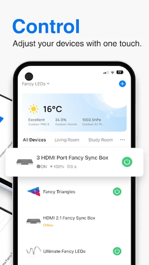 Sync, control, and elevate your lighting experience with the Fancy LEDs app. Effortlessly connect and operate your LED devices from a single platform, immersing your space in vibrant hues. With a simple setup and total customization, create personalized lighting scenes and moods that transform any occasion. Step into a world of synced brilliance and make your space come alive