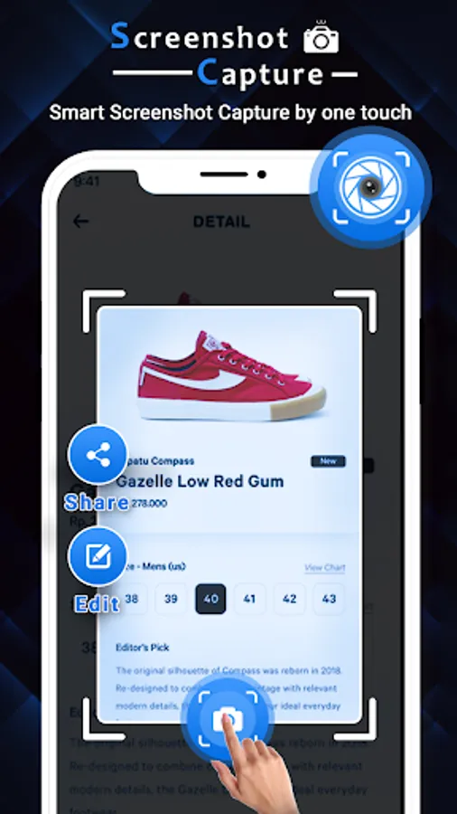 Smart Screenshot Capture : Easy Screen Recorder is the best,easiest and simplest way to capture, edit and share your mobile screen as a picture.