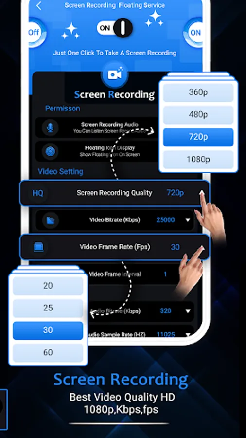 Screen recorder lets you record your screen to HD and Full HD videos. You can also record audio from the mic and it is automatically mixed into the videos.