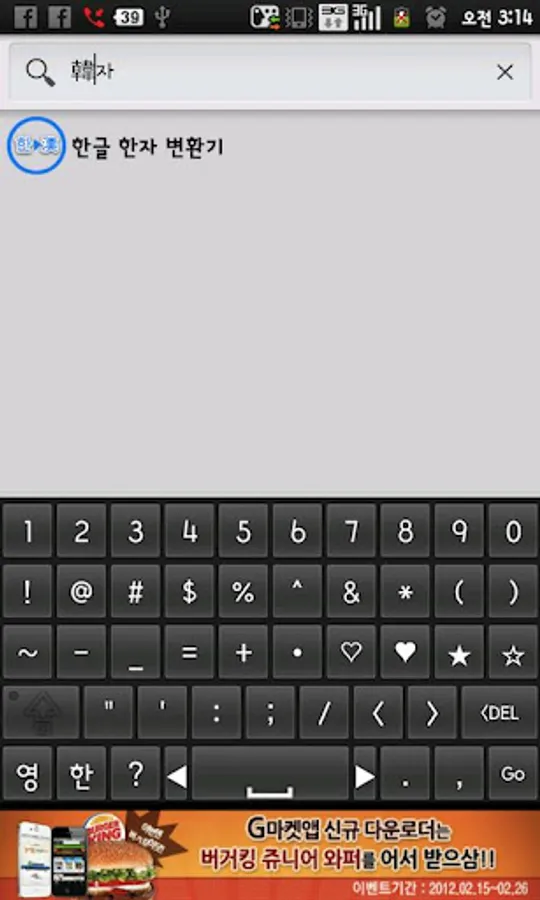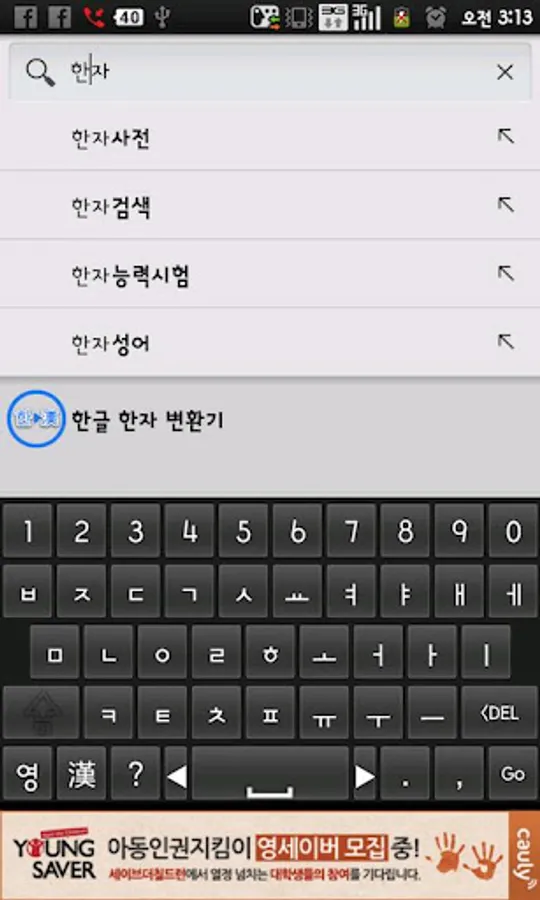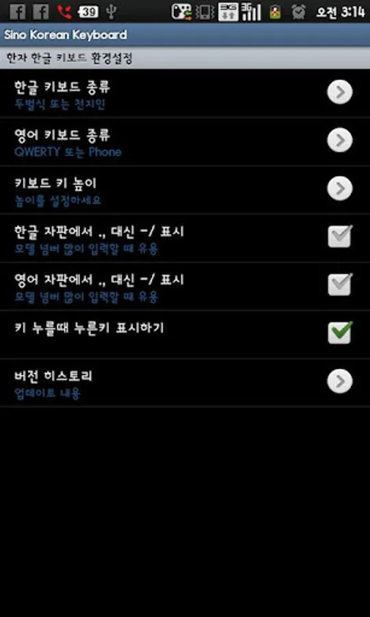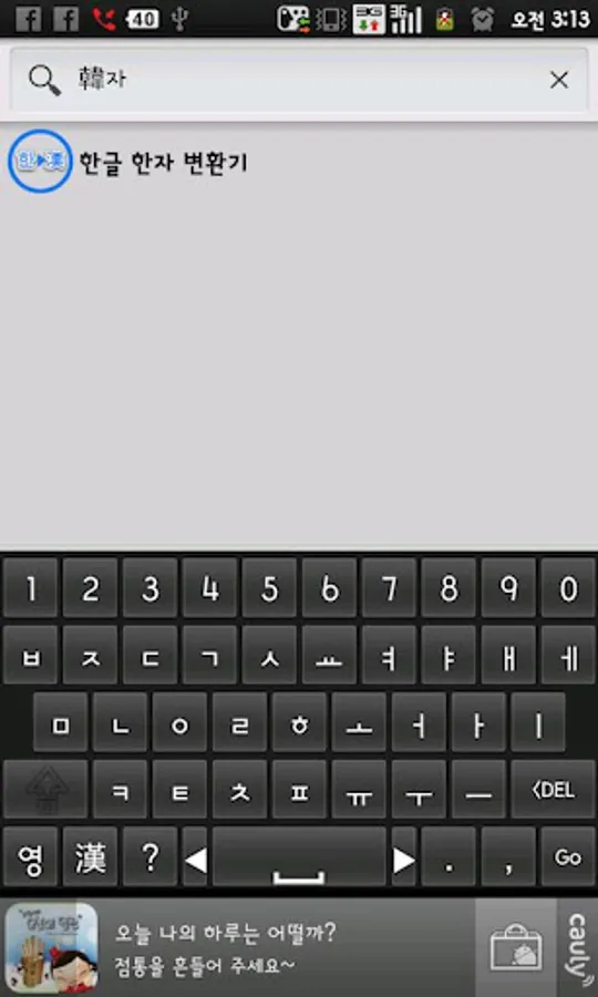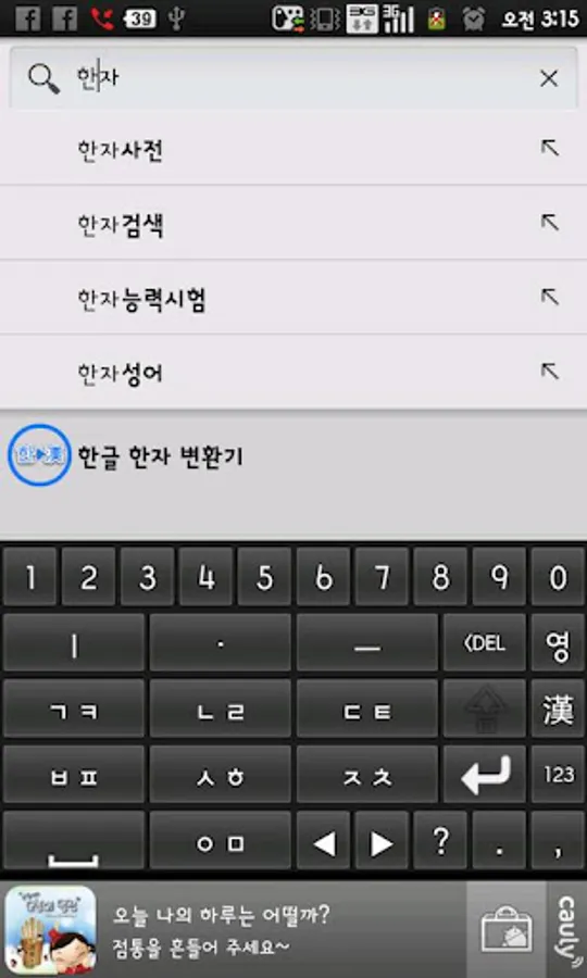 This is a Korean IME keyboard that lets you type in Sino Korean (Chinese characters used in Korea) just as you would on a PC. The number keys are placed along with the character keys, so it's very convenient to type numbers and characters at the same time.