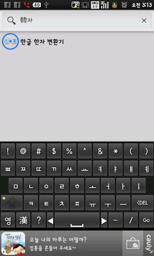 If you want a keyboard that lists all the possible Chinese characters for a Korean character, and that which has commonly used keys placed at more convenient places, please buy the paid version of this keyboard.
