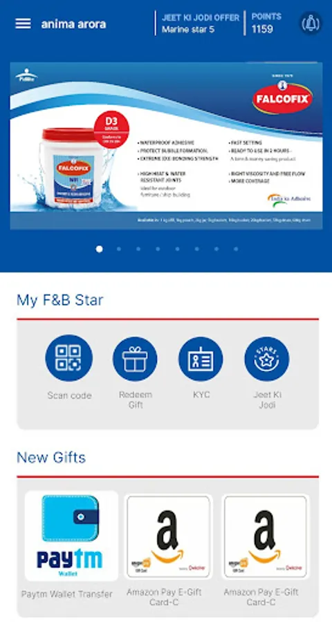 F&B Stars app is a rewards program application for Falcofix and Bluecoat users. This program is developed to reward the loyal wood working contractors who choose quality brands Falcofix and Bluecoat.