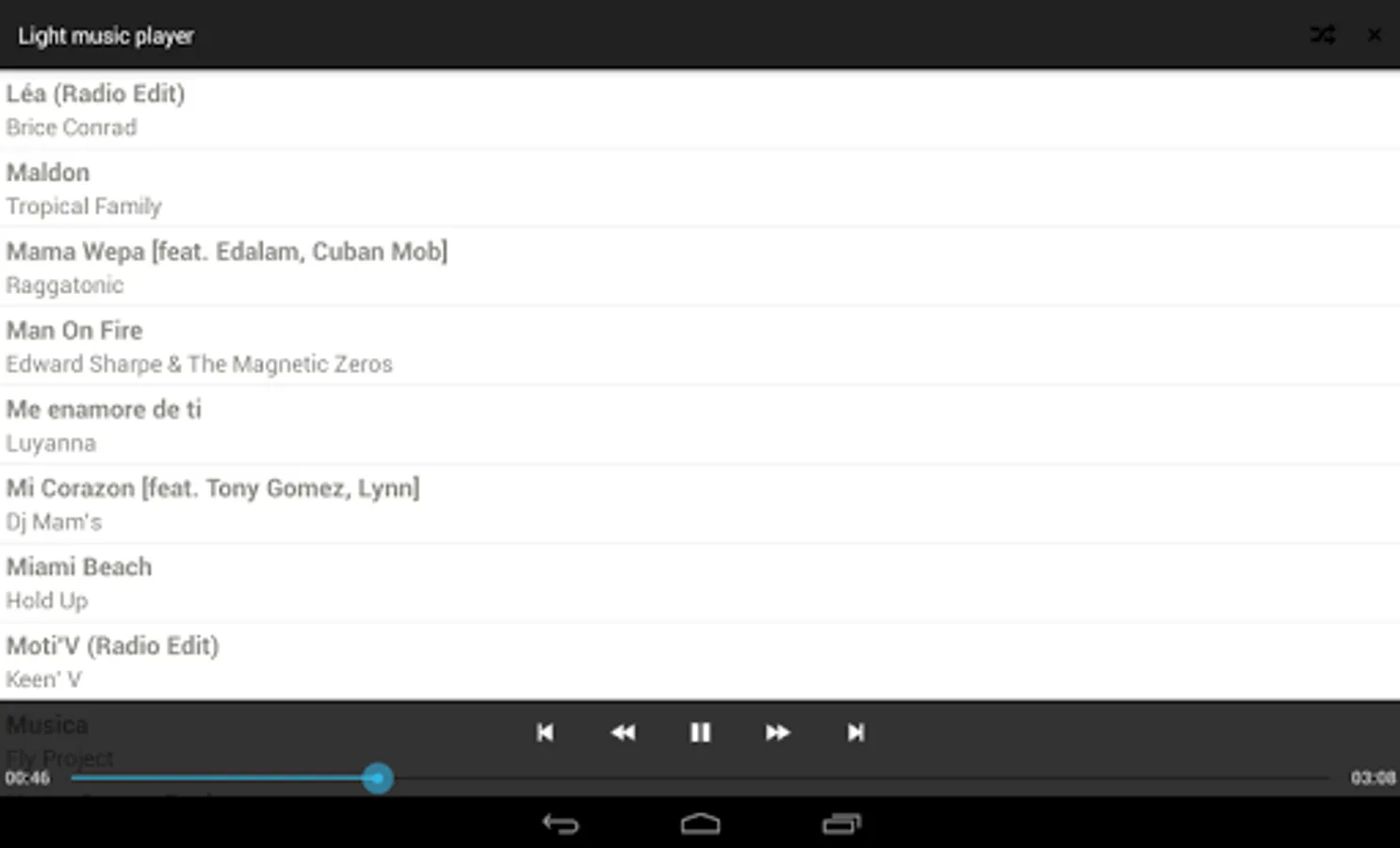 Light Music Player is a music player that plays codecs such as mp3, flac, ogg, midi.