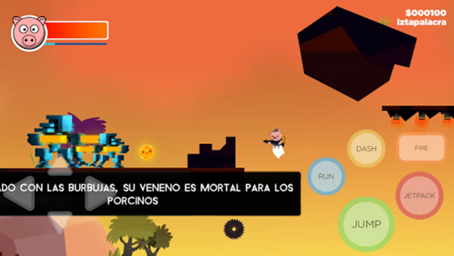 The Adventures of Piky Pig is a challenging and entertaining game platforms with strange characters and a totally Mexican humor, trying somewhat realistic themes. The main character is a brave pig who confronts the evil Dr. Bacon who wants to destroy humanity creating robots murderers and turning their evil powers to anyone who crosses his way to his evil plans, the only one who can stop him is We piky our hero with the help of your laser weapon defies evil.
