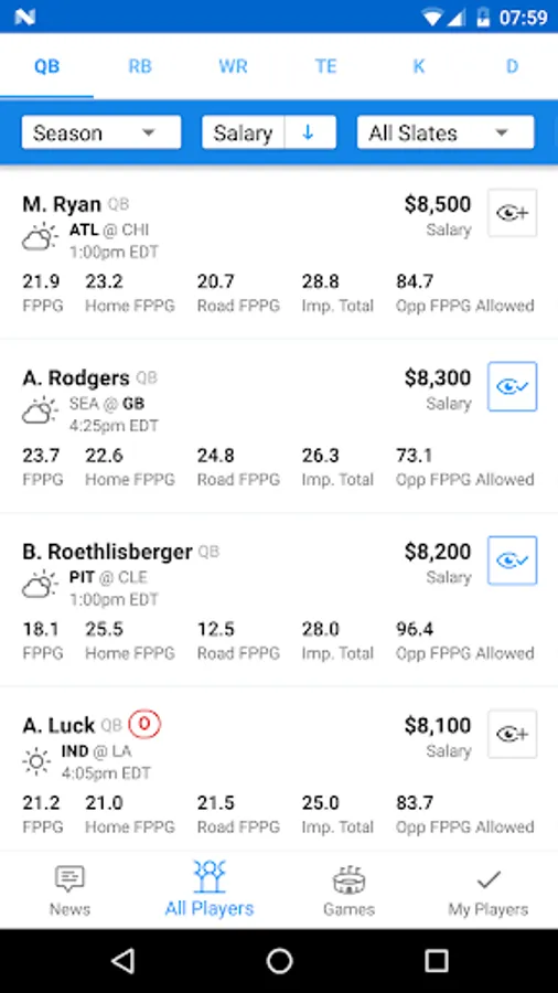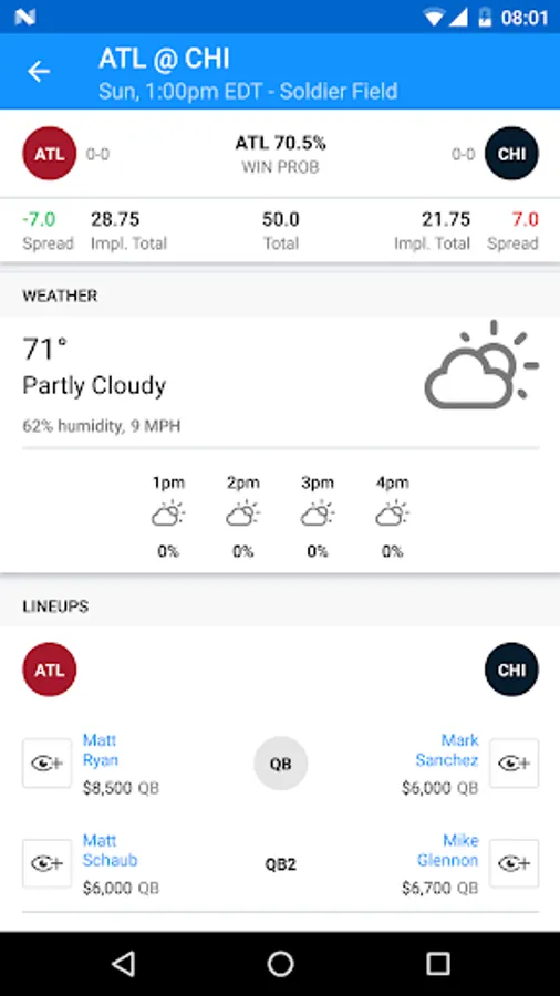 INJURY NOTIFICATIONS — Scout automatically syncs with your FanDuel account. So if there are any unexpected changes in your lineup, Scout will tell you.