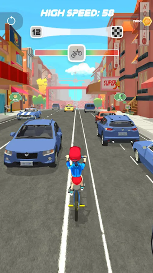 Hit the streets with your bike! Wheelie all the way through the cars and the crowd!