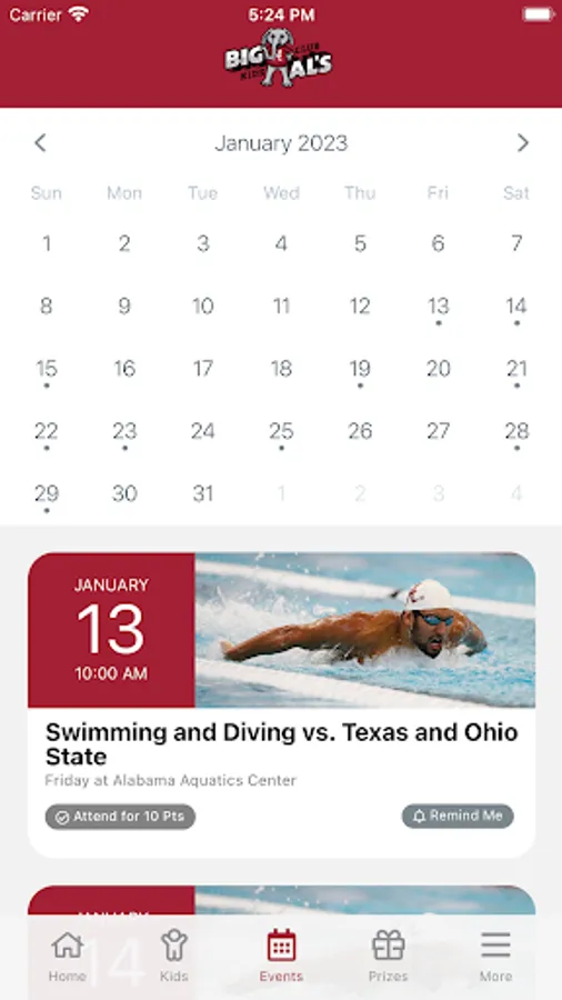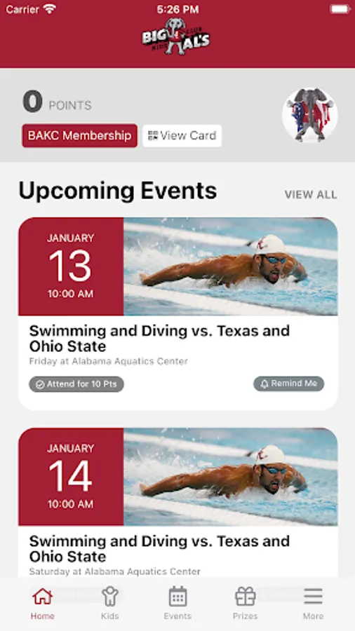 Big Al’s Kids Club is the best club around for young Bama Fans to show their Crimson Tide Pride! It is the official Kids Club of Alabama Athletics and free for all kids 12 and under. It exists to provide opportunities for children to engage with Alabama Athletics in a meaningful and fun way. Through Big Al’s Kids Club, children will receive points for attending athletic events to redeem exclusive BAKC prizes and a discount on birthday packages during their birthday month. Children will be encouraged to attend at least one soccer match, volleyball, men’s basketball, women’s basketball, softball, baseball game and gymnastic meet by completing their punch card to earn an exclusive BAKC prize pack not available in the prize store. Not to mention members will receive a personal invitation to Big Al’s Birthday Party! Big Al’s Kids Club is meant to engage children in the world of Alabama Athletics in such a way that brings them back every year and brings excitement to their experience!