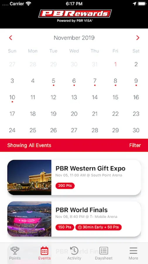 • Earn Points for Attending and Watching PBR Events