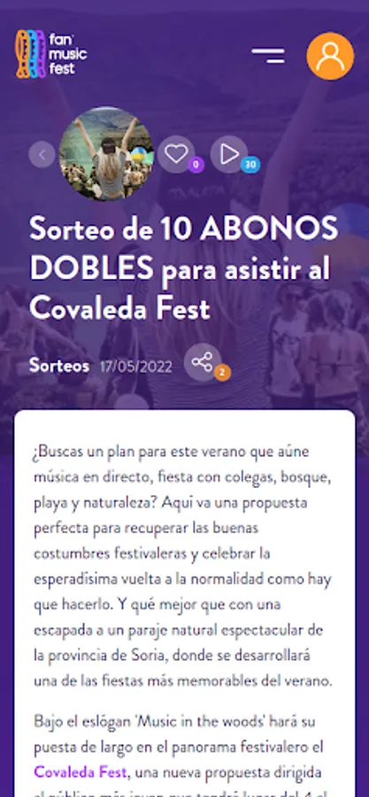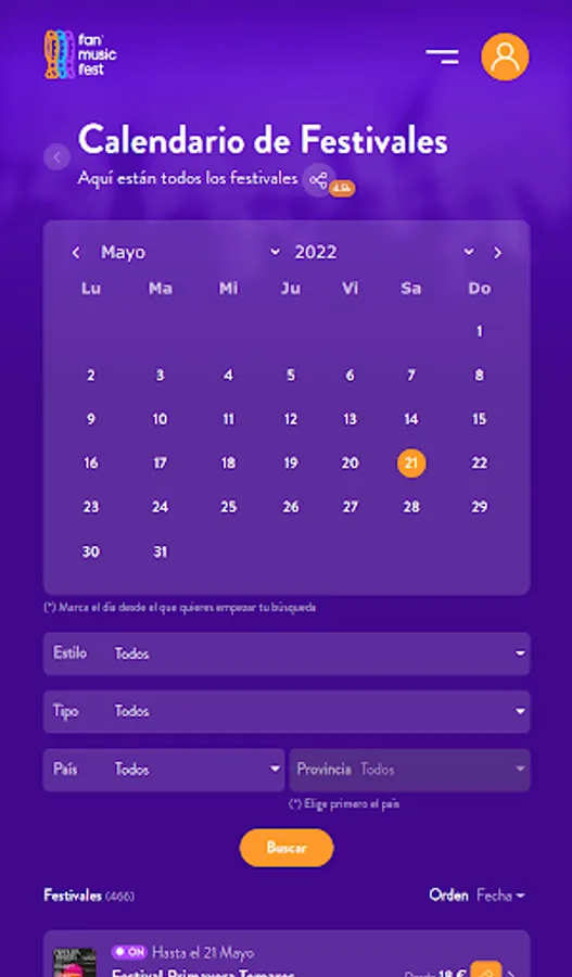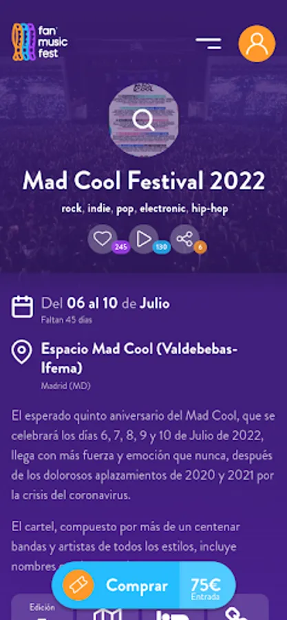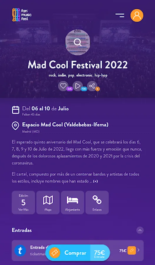 For each event you have complete information, news, poster, tickets, accommodation, video channel and everything you need to find your favorite festi and organize your festival getaway.
