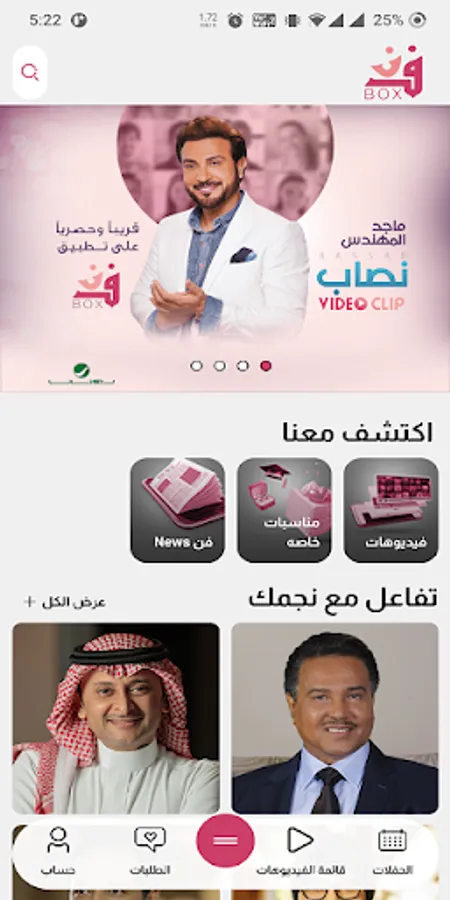 Exclusive live and on-demand virtual concerts and events with top Arab superstar singers streaming anywhere, at any time, and on any device, allowing you to experience visual concerts and event with everyone in the world as if you are actually there with your friends.