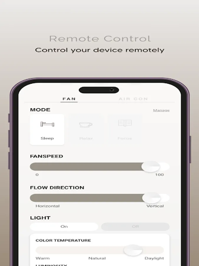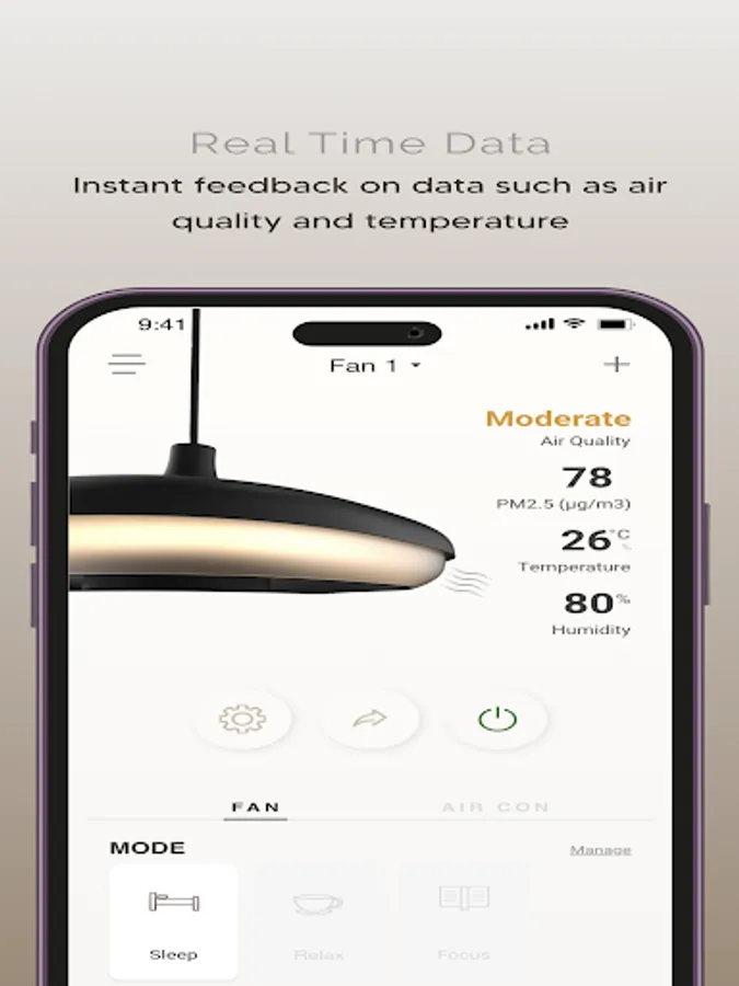 Coupled with AI-controlled airflow velocity variation from its air vents, Fannos can achieve flap-less air-sweeping effect for the entire airflow ring, and therefore able to provide optimal indoor air circulation and thermal distribution. It is also equipped with sensors to monitor real time indoor pollutants and allergens levels.