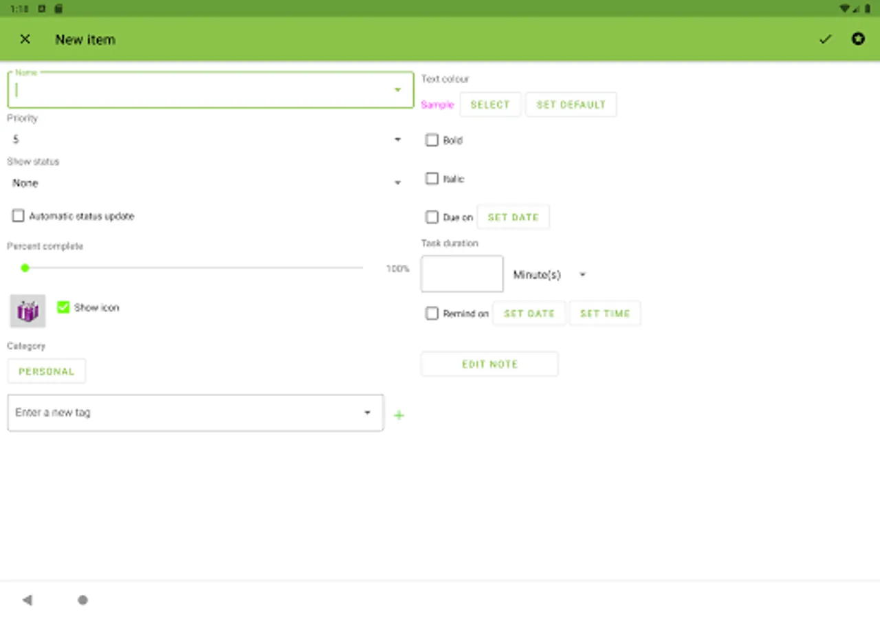 * Assign different attributes such as colour, category, icon, priority, due date, status type, tags etc.