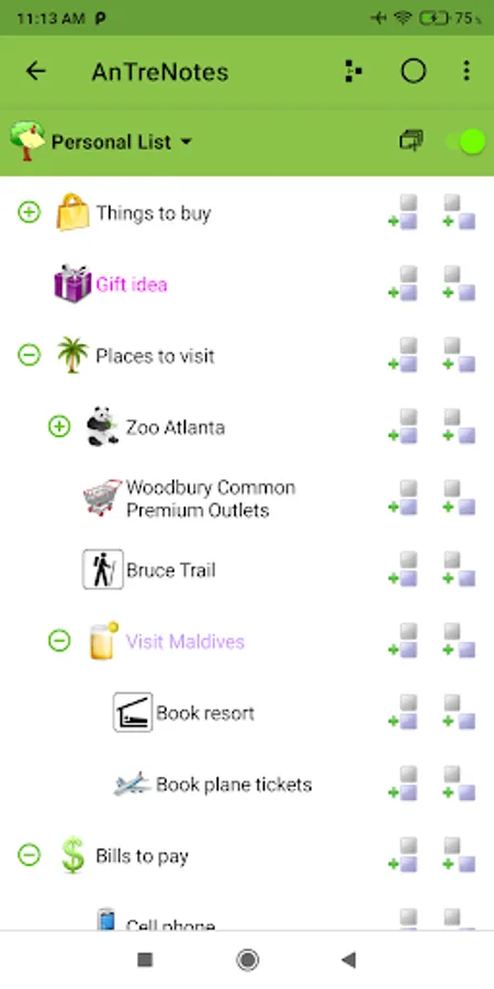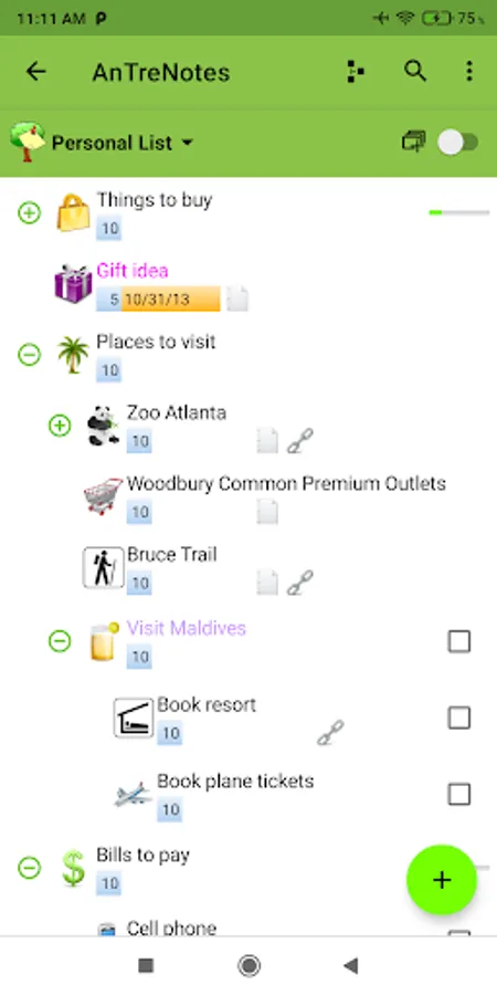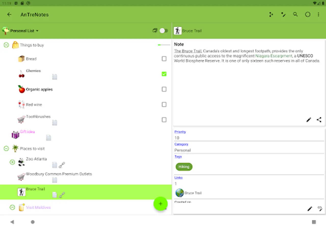 AnTreNotes (Demo) is a hierarchical note list program. Features: