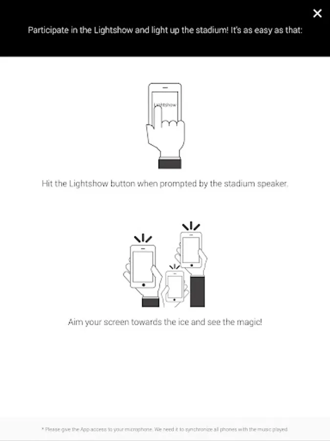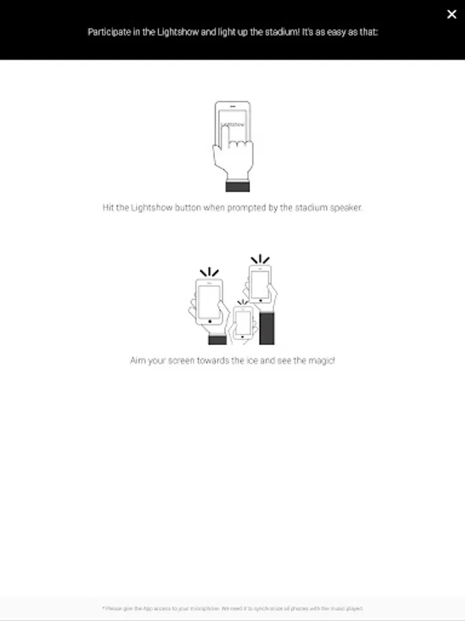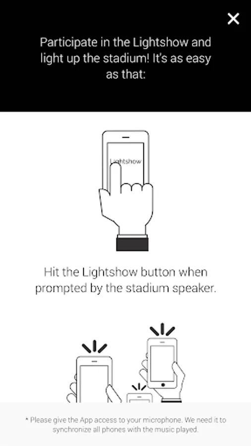 Make sure to allow the App to access your microphone in order to participate in the Lightshow!