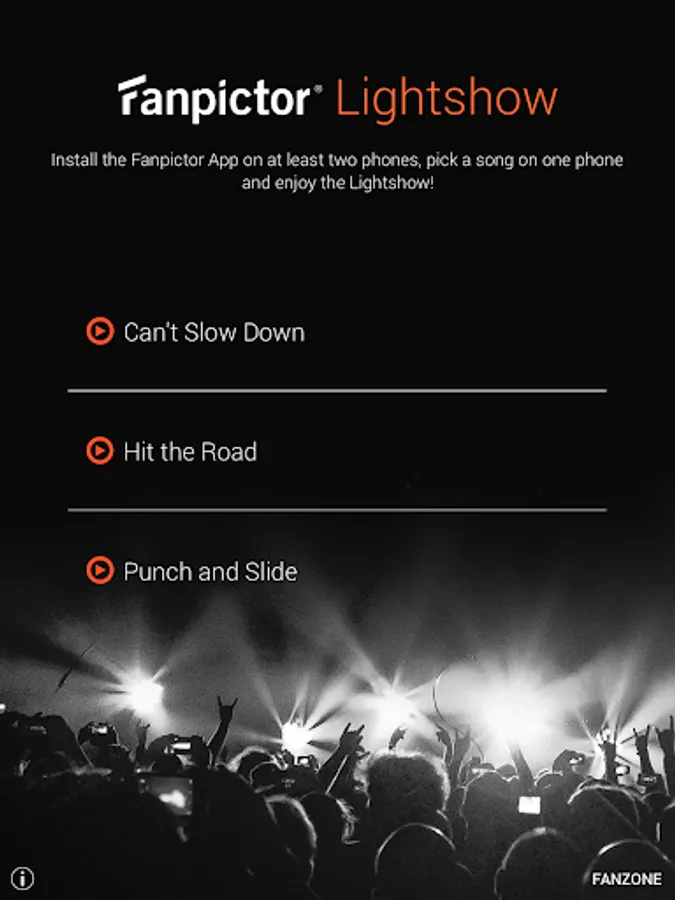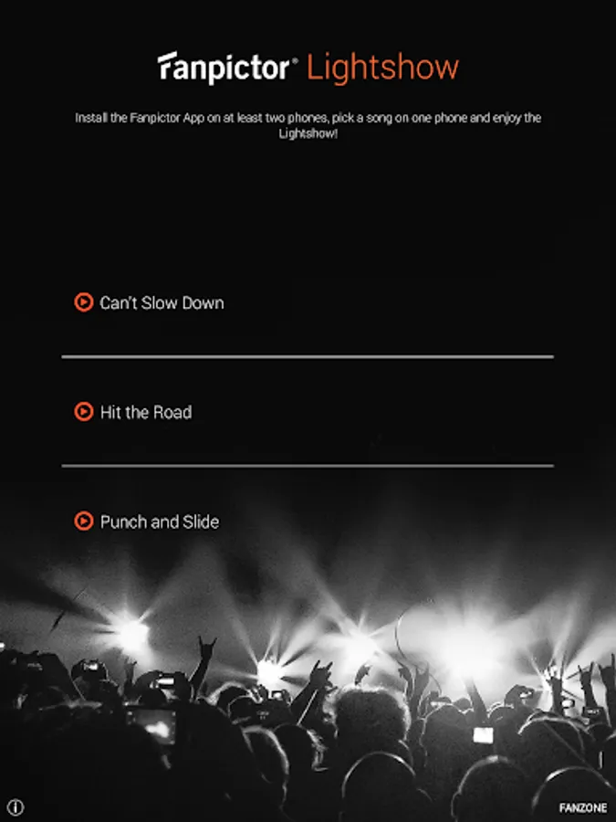 3. One of you can pick a song and all phones combine to a stunning Fanpictor Lightshow