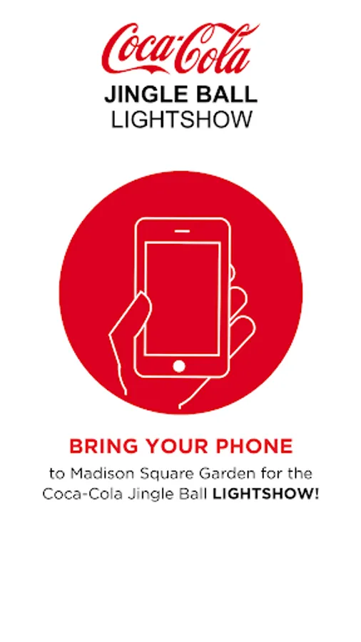 This App will transform your phone into a dynamic beacon of light, forming part of a glittering mosaic. Along with 20,000 fans at MSG you will play your part in an incredible light show synced to live music, and share the Magic with Coca-Cola.