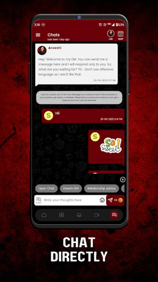 - Direct Line : It's like Direct message to Anveshi. Connect with her directly anytime