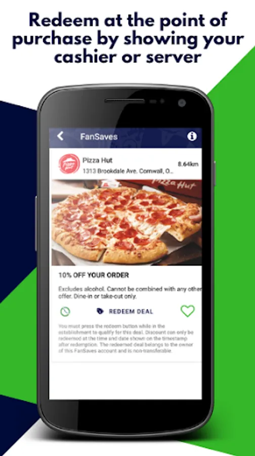 When you visit a business that sponsors a team you're following, pull out your phone, scroll to the discount or deal, show it at the point of purchase and receive your deal.