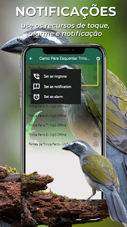 For the best alternative, use singing birds to warm Trinca Ferro that have been cut. With the sound of bird mp3, you can graze easily by simply playing it.