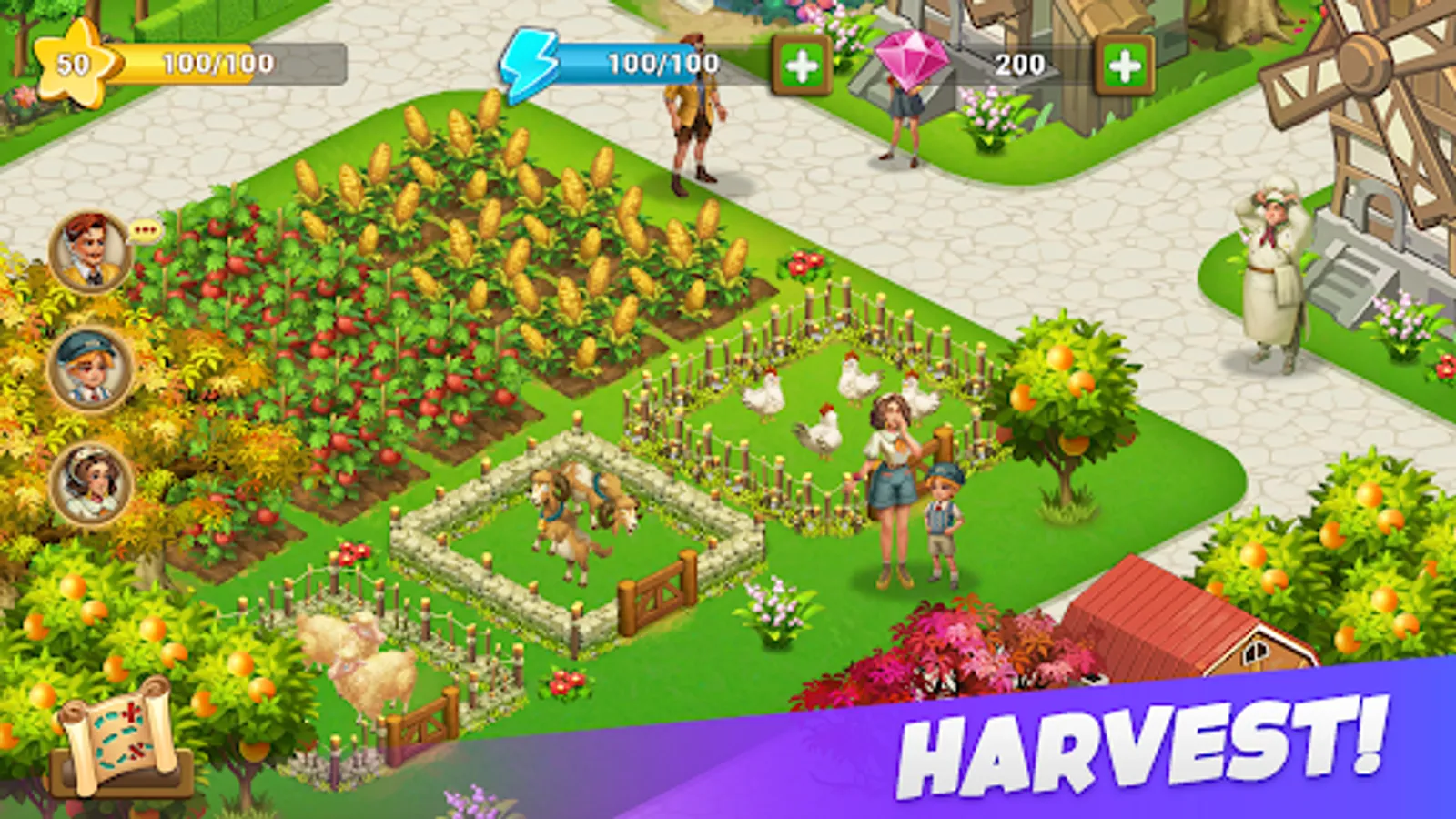 Build a cozy villa and family farm, extract resources, and produce everything you need for exciting expedition quests, construction, and trading with our free simulation games. Raise animals, crop harvest land, trade with neighbors, and have fun with new adventures in this trade island game!