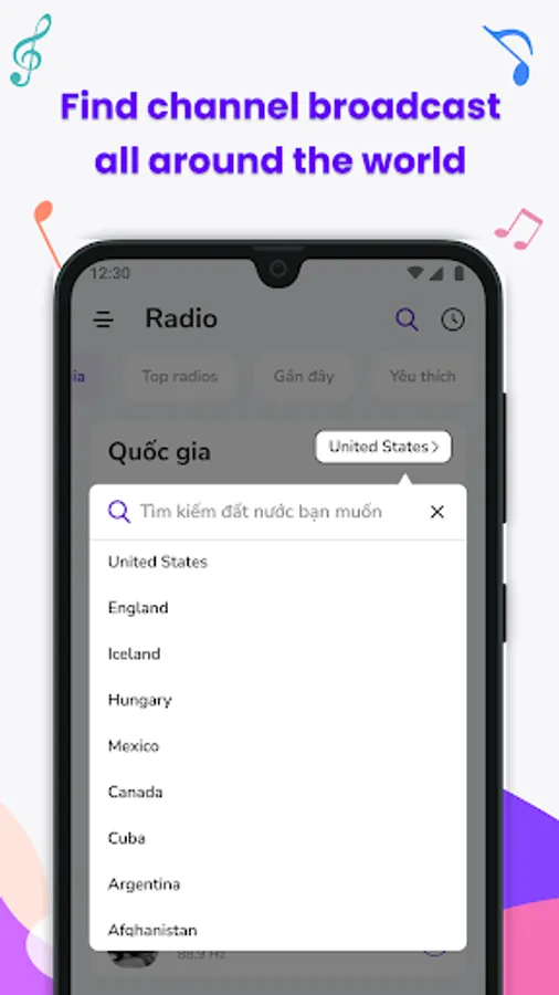 + Fast access to Radio from: Countries list, Favourite List, Recent List