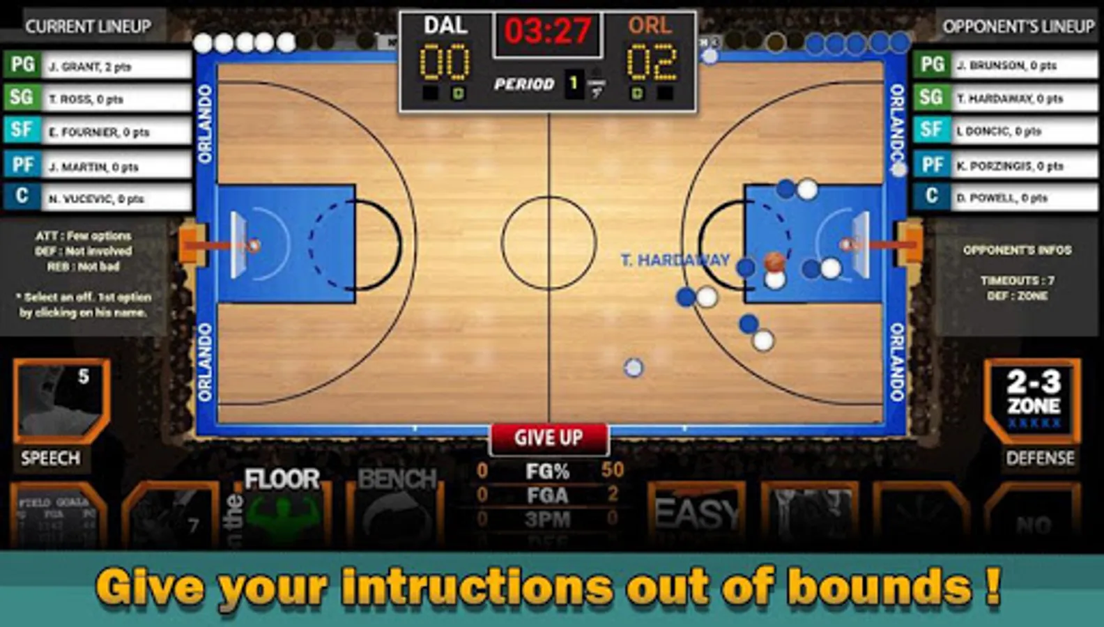 Make smart substitutes by saving the energy of your players. Give more shots to your best player. Select your first offensive option and take 3s!