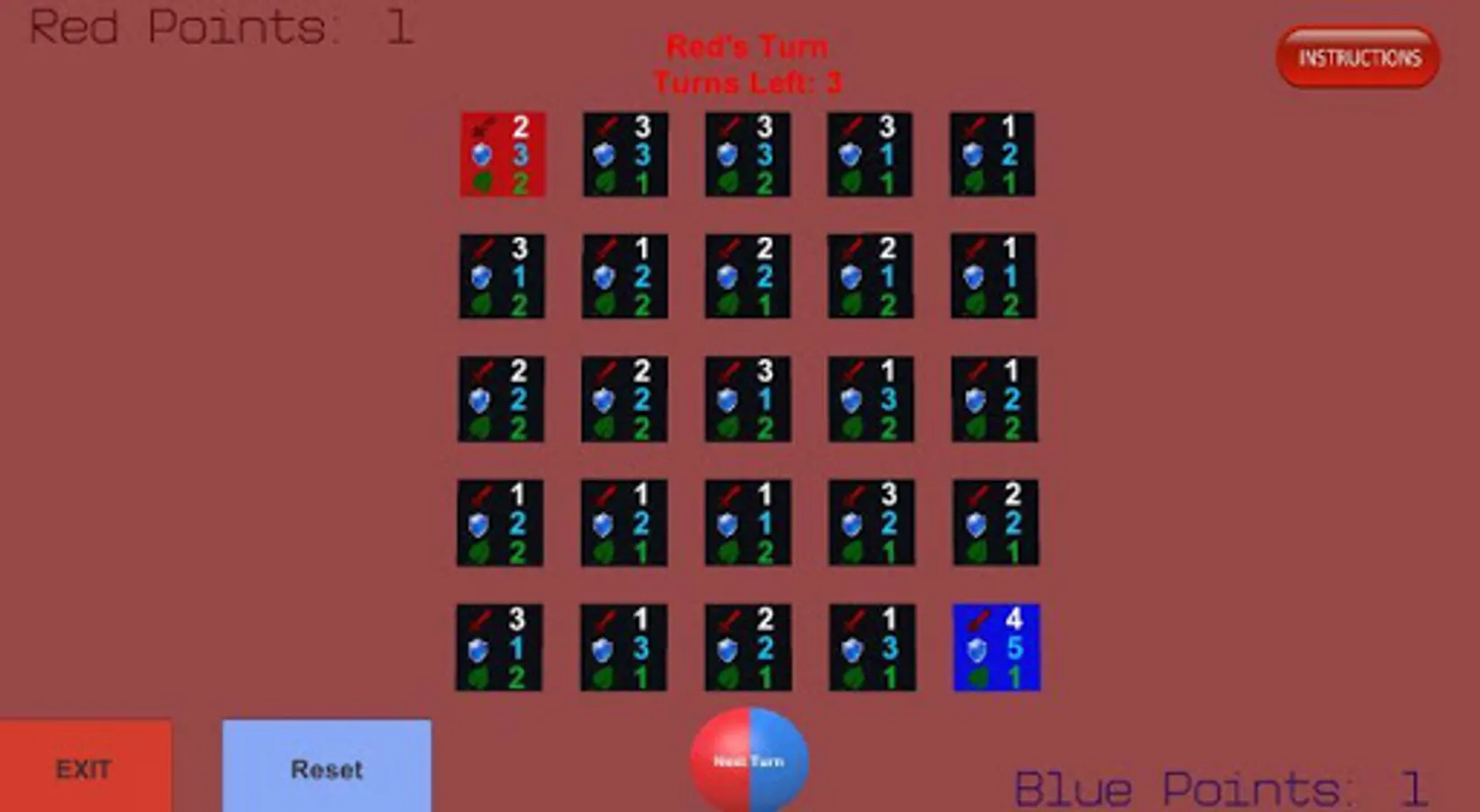 Simple tile wars game. Claim all your enemy's tiles to win.
