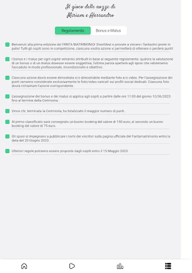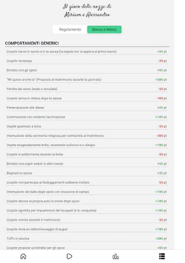 Guests become protagonists. Every wedding has its own FantaWedding league, the bride and groom will draw up a series of missions to accomplish.