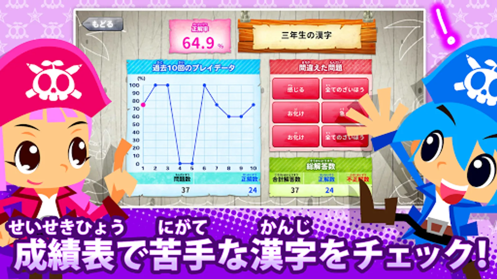 Kokugo Pirate is a game where even children who are not good at studying can learn Chinese characters while having fun.
