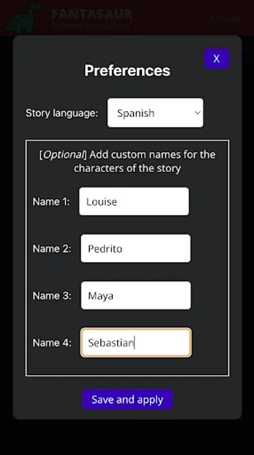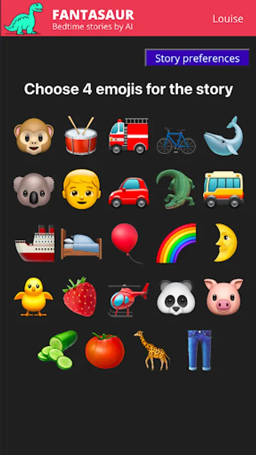 Choose 4 emojis and a moral for the story, select your language (currently English, Spanish, French, Portuguese and Norwegian) and give custom names to the main characters. Our powerful AI engine will create within seconds an amusing story about your chosen emojis and moral, with custom illustrations, just for you.