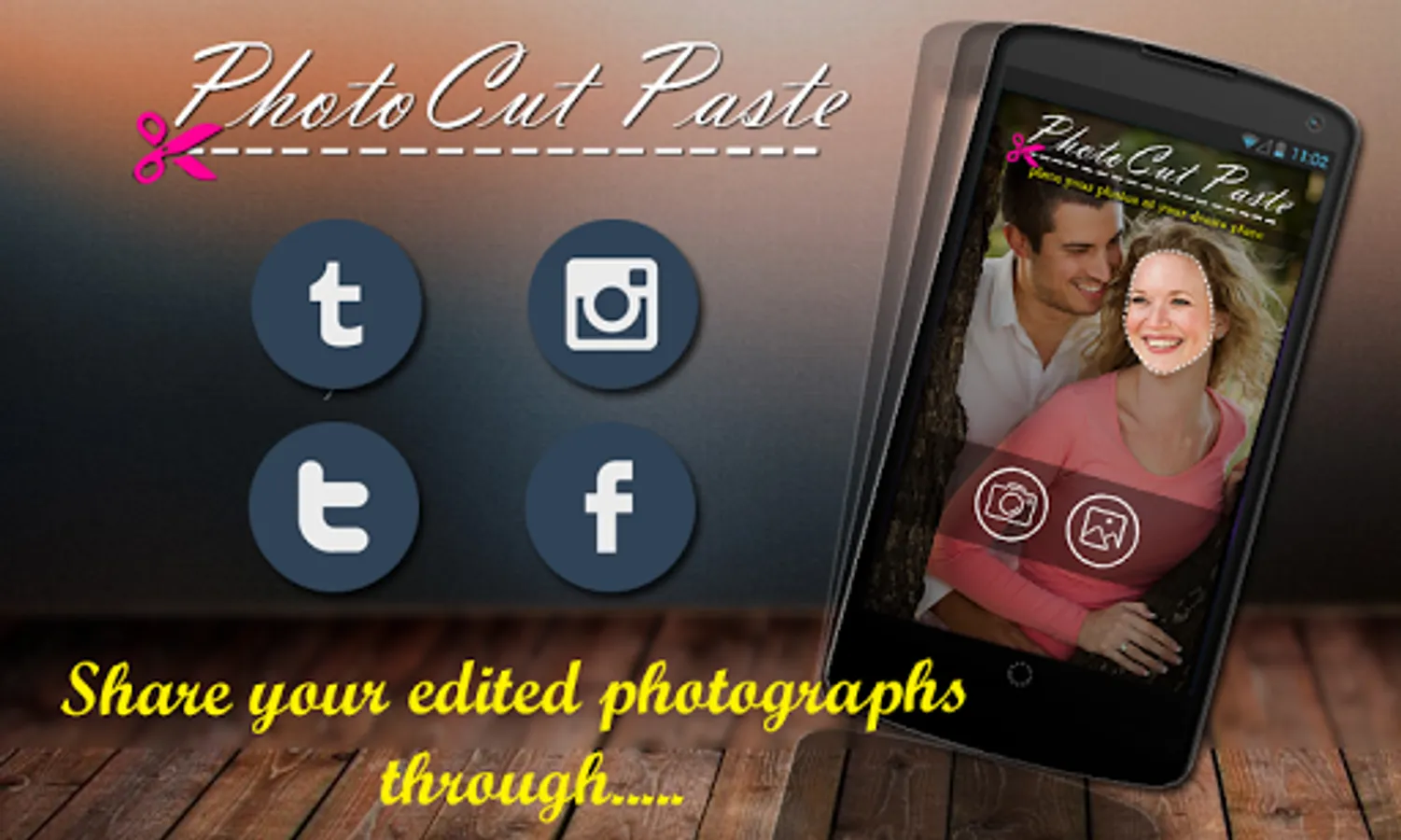 Photo Cut Paste Editor allows you to cut a specific portion of your selected photo. And paste it into another photo. With this app user can Cut one face and Paste it on the other. Instantly create new photo with photo cut paste.