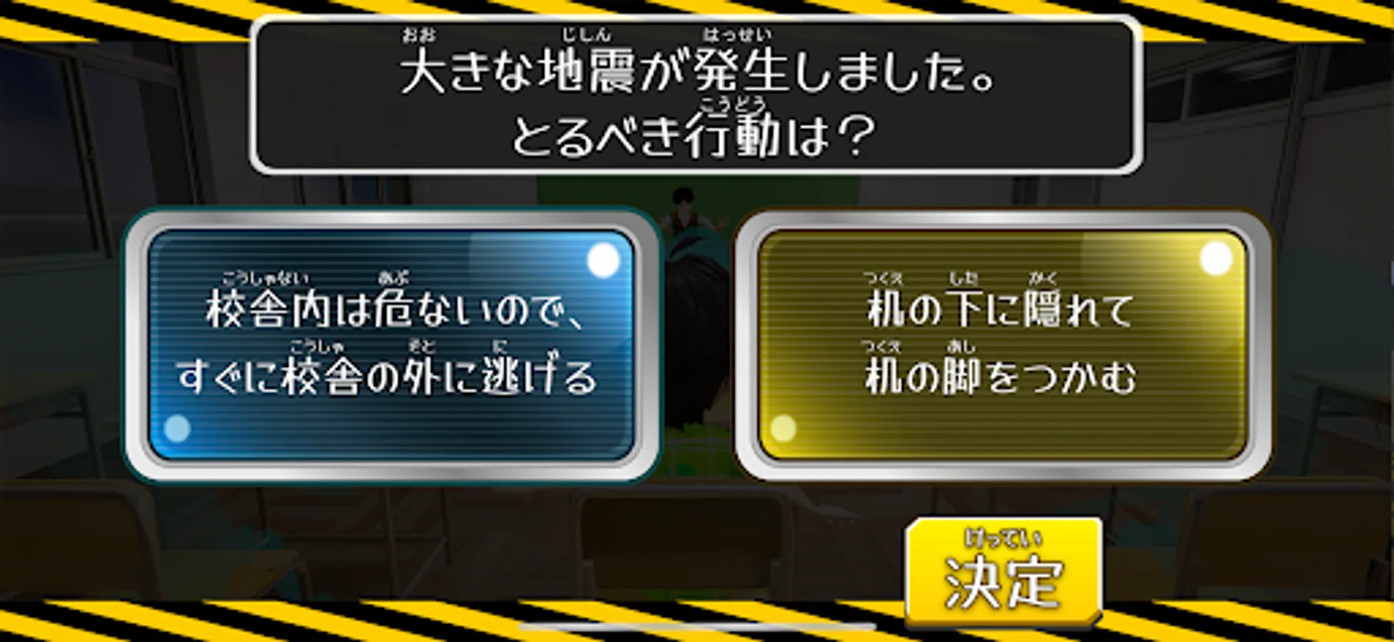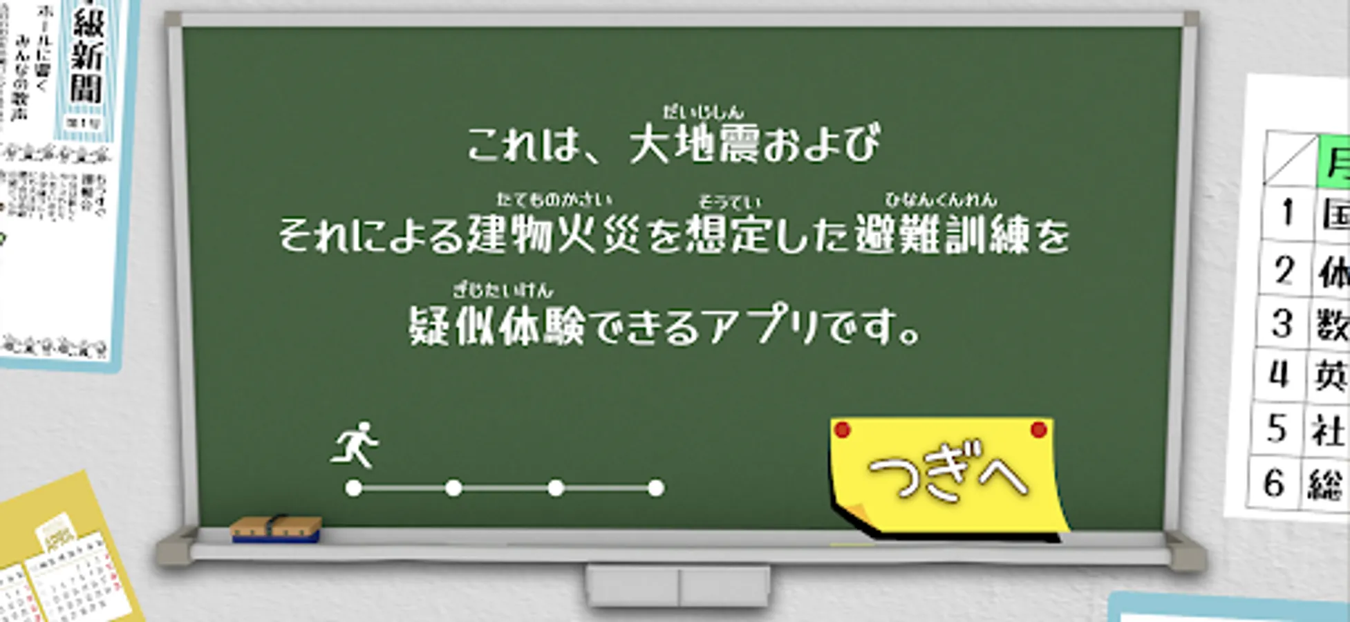 This app is a pilot version of an app that allows you to learn appropriate evacuation behavior in the event of a disaster.
