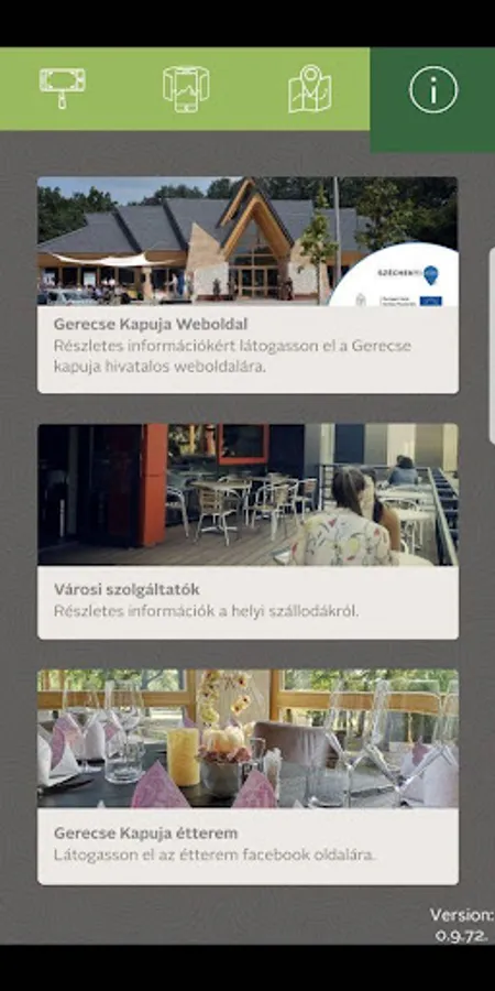 - In the application, you can find more information about Gerecse Gate, Visitor Center, Restaurant and Tatabánya City Services.