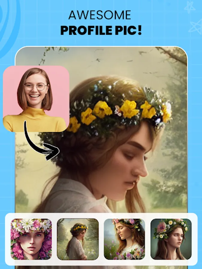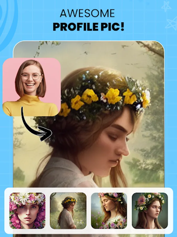 Make a stunning painting of your portrait or create a profile photo for yourself.