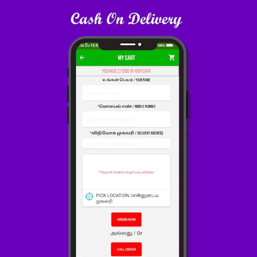 in Tamil nadu. We are Providing delivery option to the customer and this app