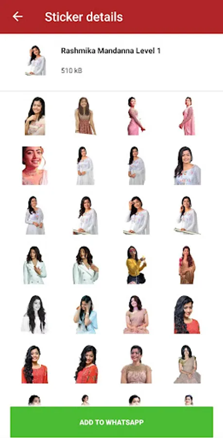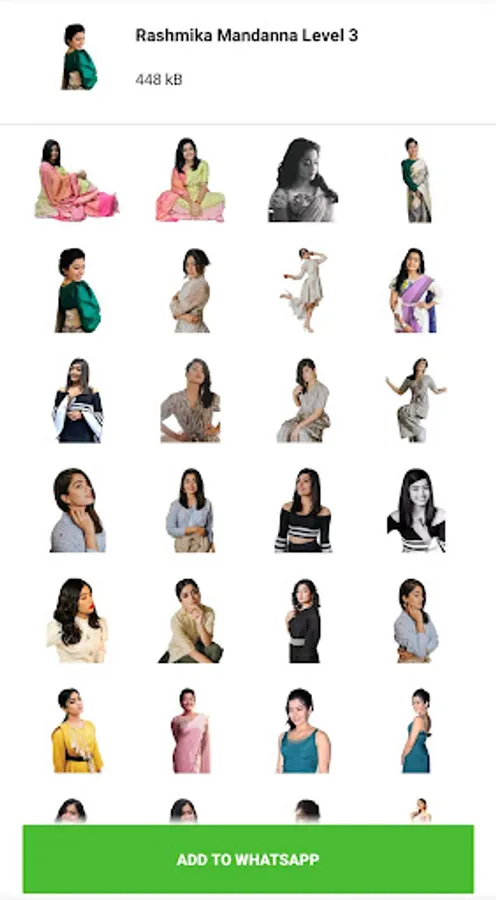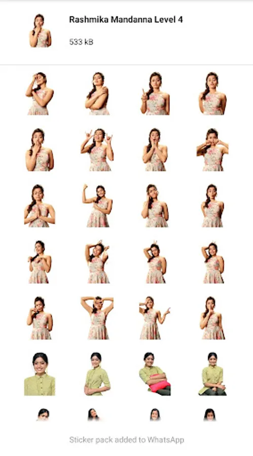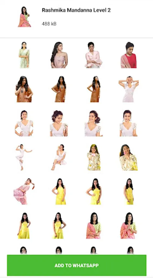 Rashmika Mandanna Stickers has lot of new stickers with cute expression.