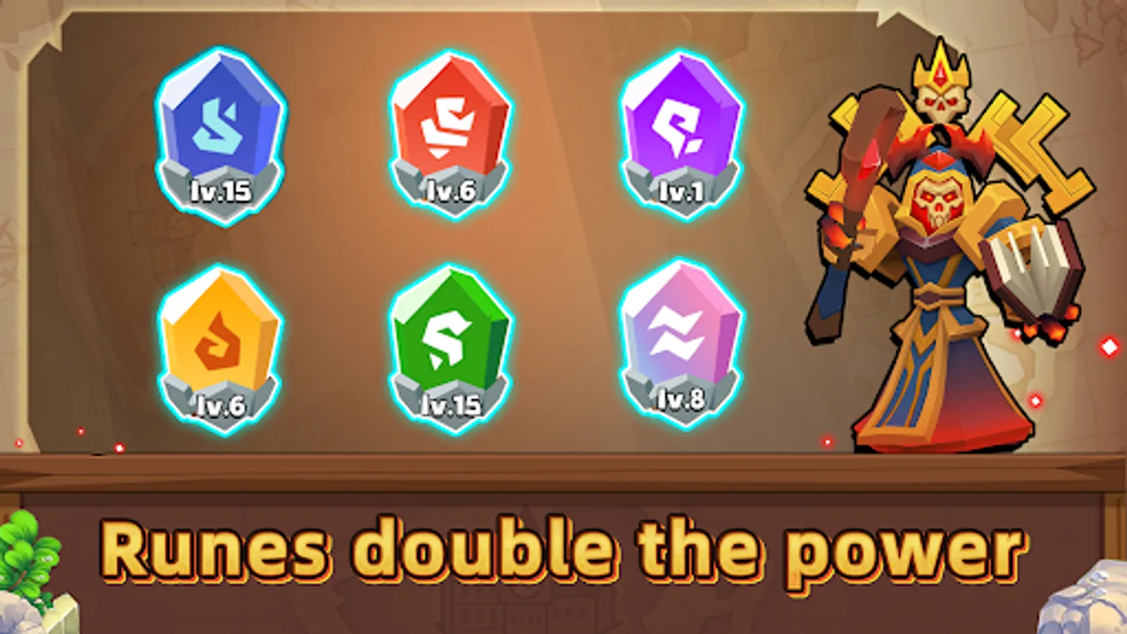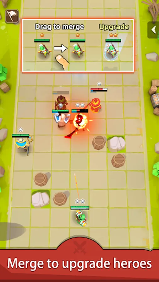 Recruit more heroes to expand your camp. Merge the same heroes to upgrade them in the stages and make your troop more powerful.