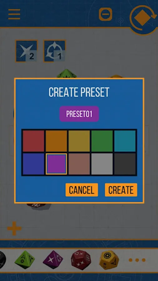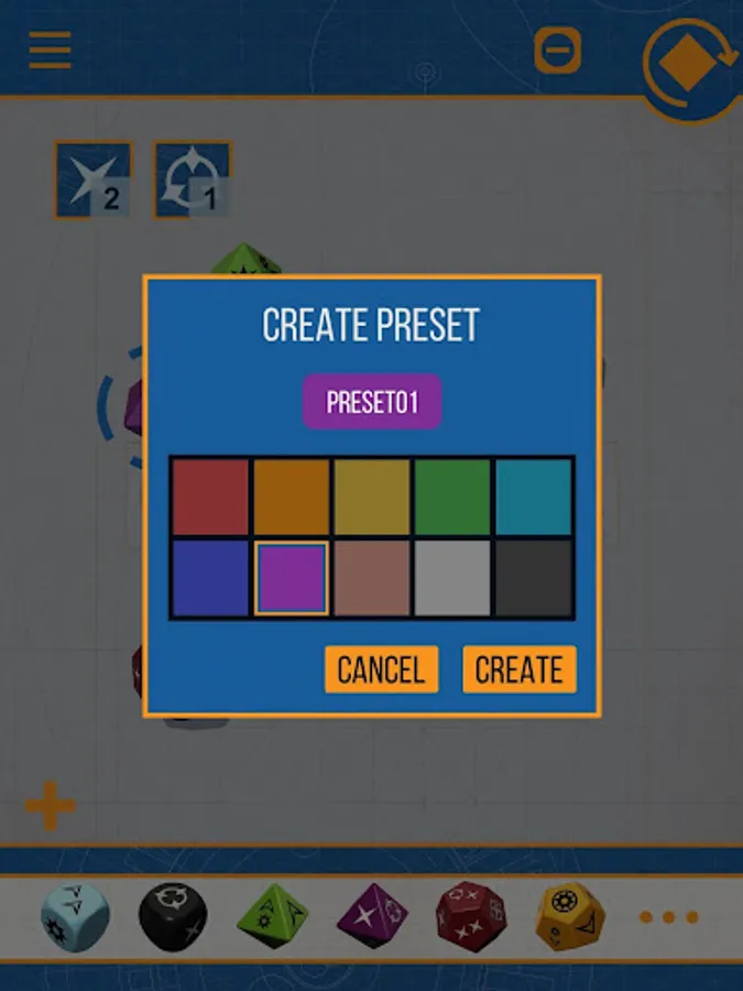 •Create custom presets for any combination of dice.
