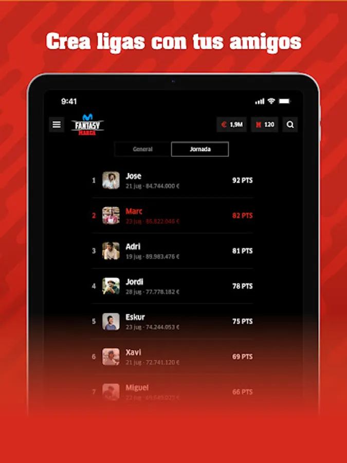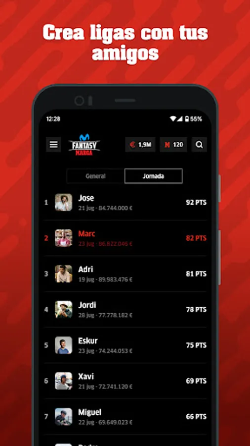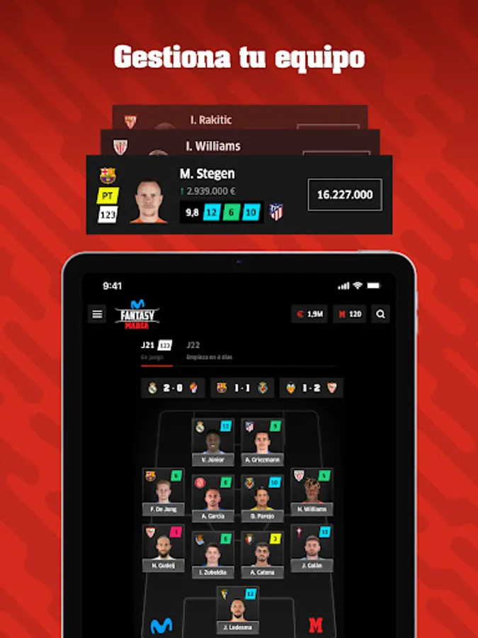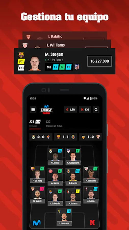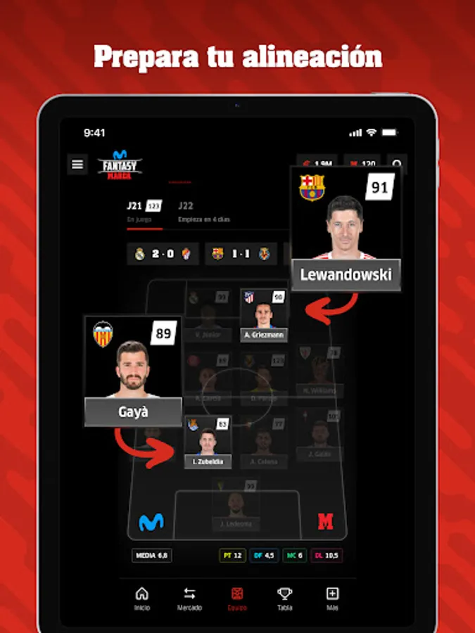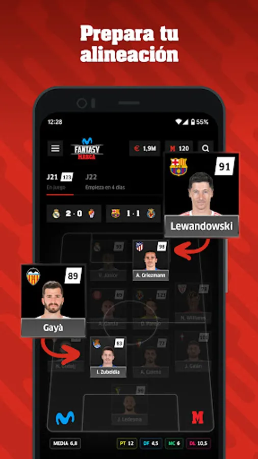 Movistar Fantasy Marca is a free and online Soccer Manager where you compete with friends or against other users from all over the world to win the league.
