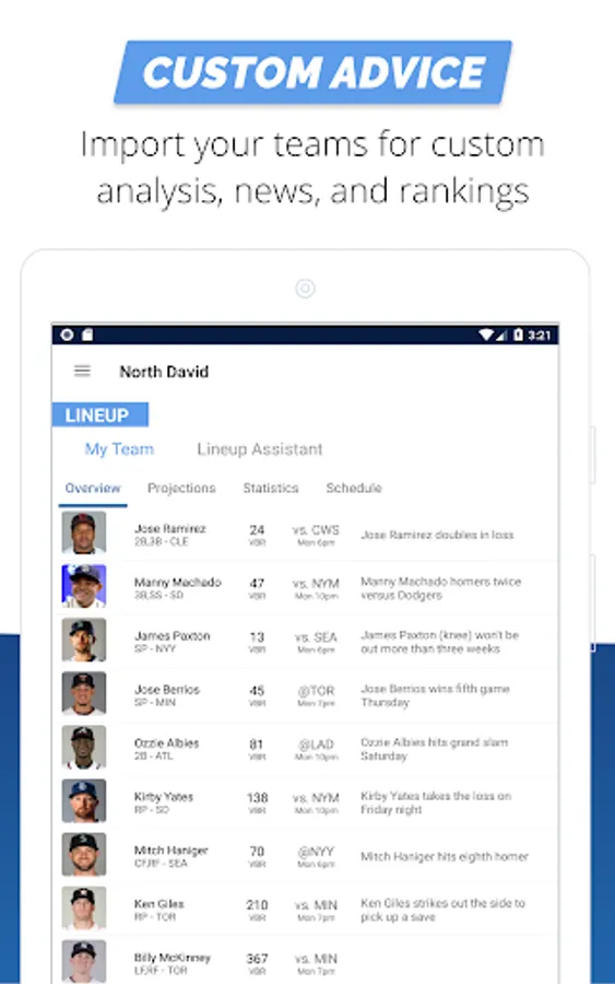 Created by FantasyPros, the #1 fantasy sports advice and tools provider in the world, this app will let you import your team to get custom fantasy baseball news, rankings, and analysis.
