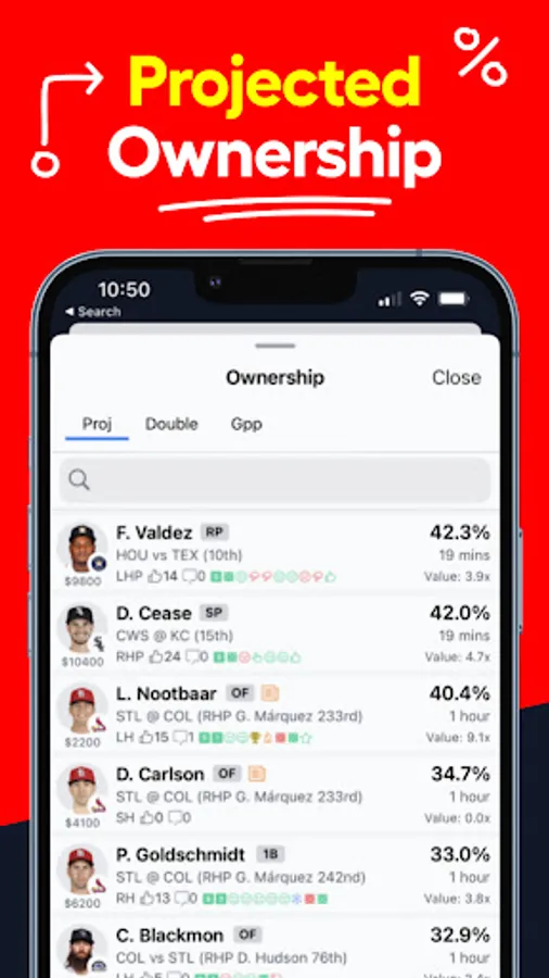 ✔ Projected Ownership Percentage %
