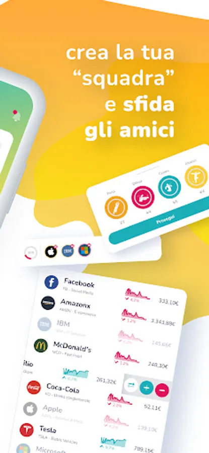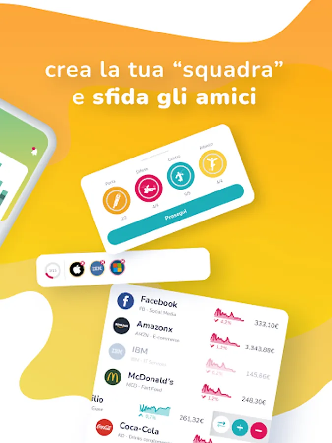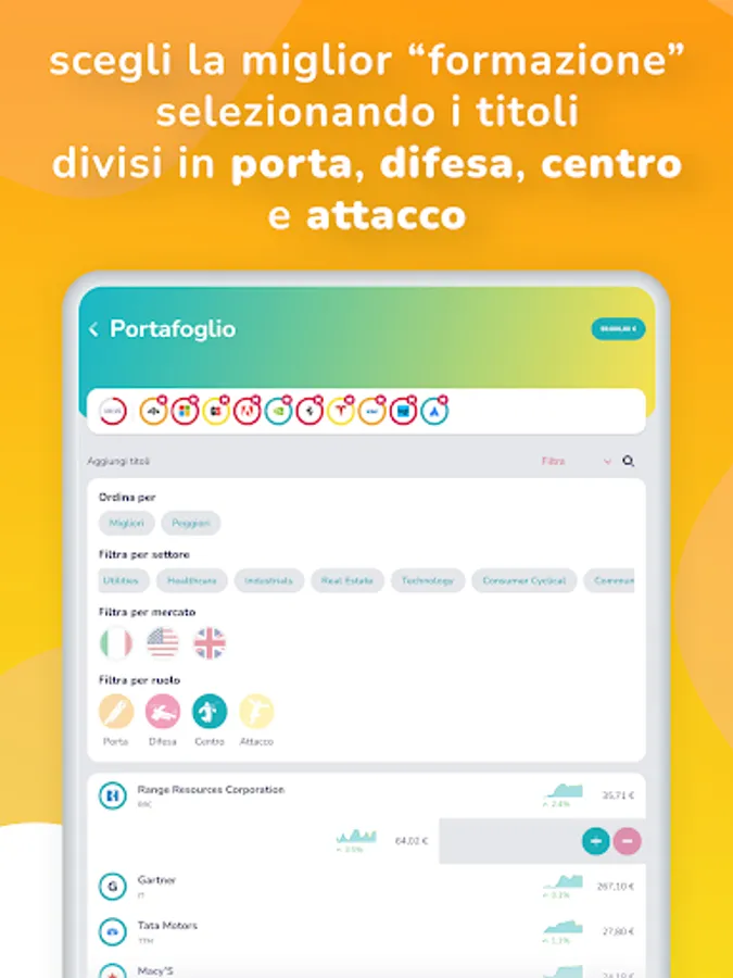 The app allows you to simulate investments on the Italian, British and USA markets.