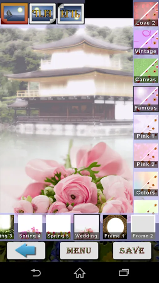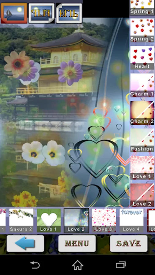 Take a photo or choose from your album to edit with Spring and Valentine's Day filters and frames.
