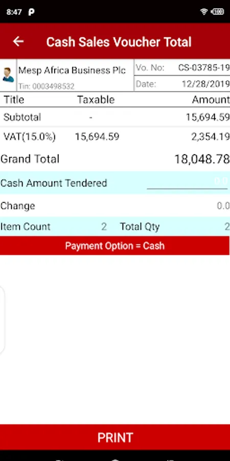 This mobile app has different modules that let you do things like save different types of GSL data, handle inventory management s and make different types of voucher transaction including cash sales transaction and come with its own printer integration.