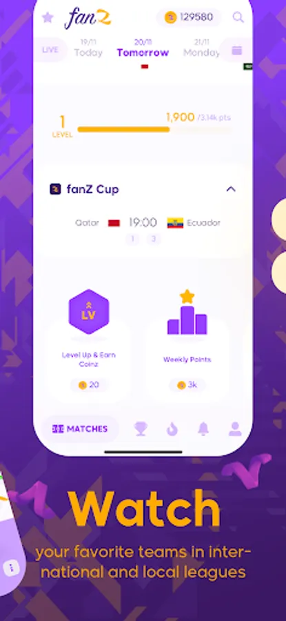 fanZ lets you predict matches scores and rewards you for it, earn coins and points to level up