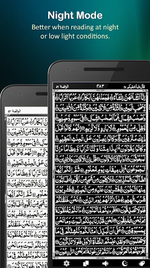 Enhance your recitation and spiritual experience with the real feel of actual printed Quran anytime anywhere. Holy Quran has a real page turning effect, elegant style, smooth Nastaliq font and different modes for better readability.